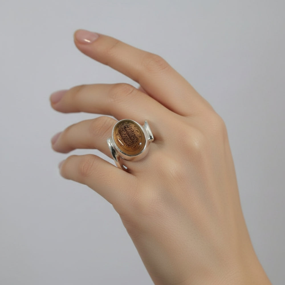 Engraved with the Seal of Prophet Suleiman and protective invocations, this sterling silver hadeed cheeni ring radiates strength, shielding, and sacred authority.