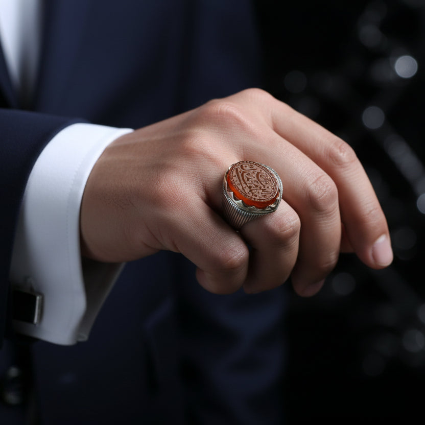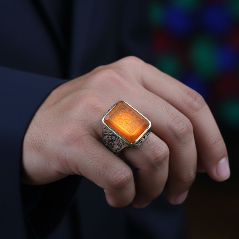 Each fiery Yemeni Aqeeq stone radiates strength crafted for the believer who leads with faith and heart.