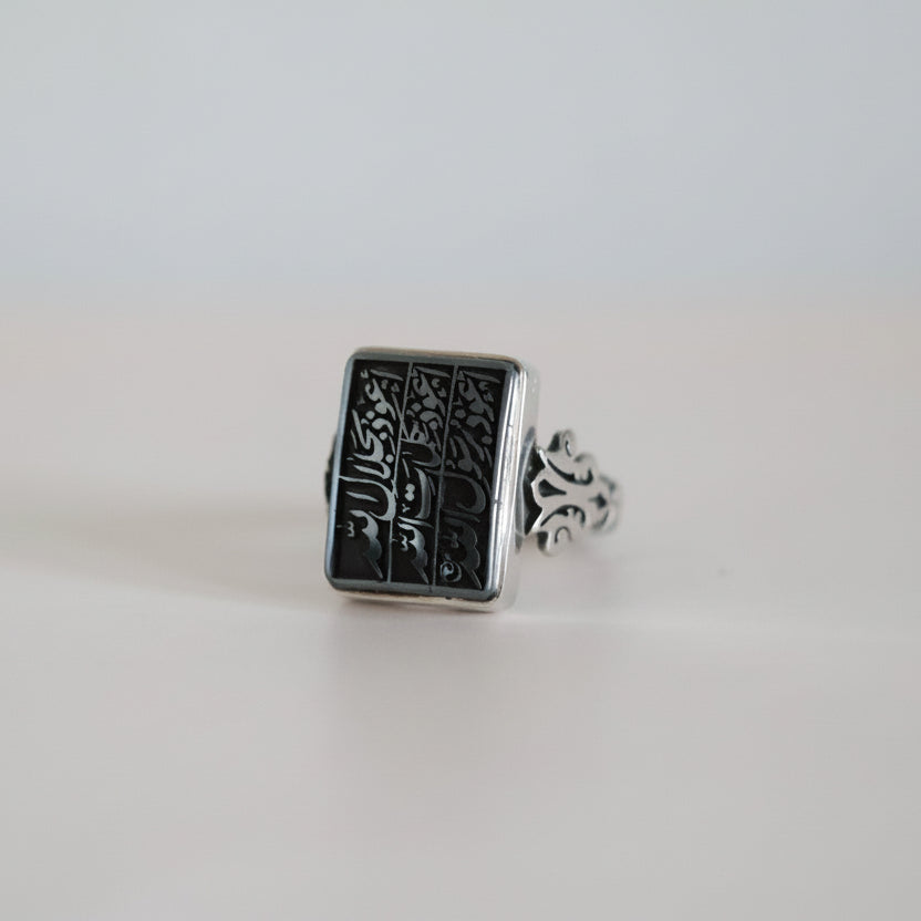 Crafted for those who value strength, intention, and spiritual grounding, the Siyaj Al-Hifdh Hadeed Cheeni Sterling Silver Ring is a statement of quiet protection. At its center sits authentic Hadeed Cheeni (hematite), long respected for its grounding presence and stabilizing energy, set within solid 925 sterling silver with an antique, hand-finished surface. The engraving is a classical supplication seeking refuge in the majesty of God, His words, and His Messenger a declaration of protection spoken through form rather than ornament. This ring is not designed to impress outwardly, but to anchor, fortify, and steady the wearer. Its substantial weight, dark reflective stone, and disciplined design create a sense of authority and balance. This is a piece chosen by individuals who understand that true strength is contained, intentional, and unwavering.