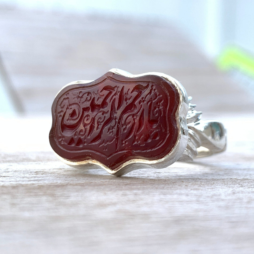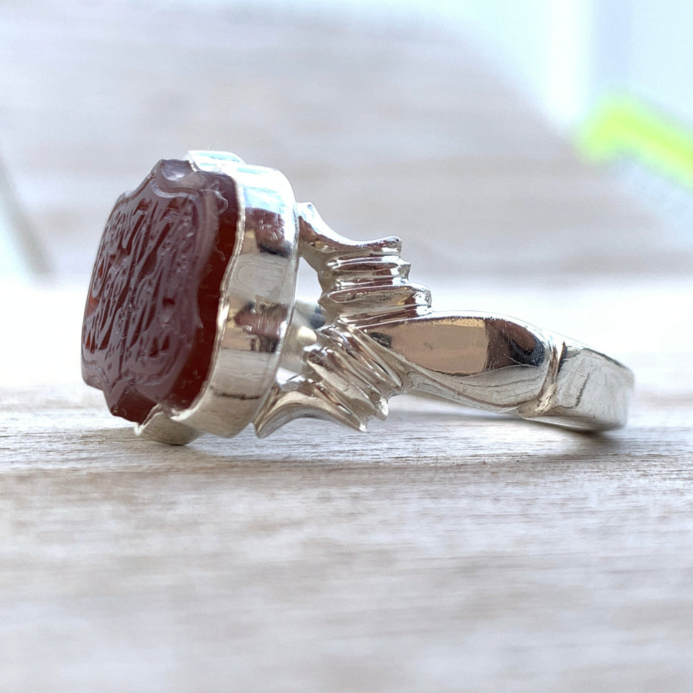 Step into the world of Yemeni Aqeeq, the gemstone of protection, clarity, and divine energy. Revered for centuries across Arabia and Persia, this sacred stone is believed to shield its wearer from harm, sadness, and envy while attracting strength, faith, and prosperity. Each ring in this collection is handcrafted in sterling silver and set with genuine Yemeni Aqeeq, celebrated for its deep reddish-brown glow and spiritual power.
